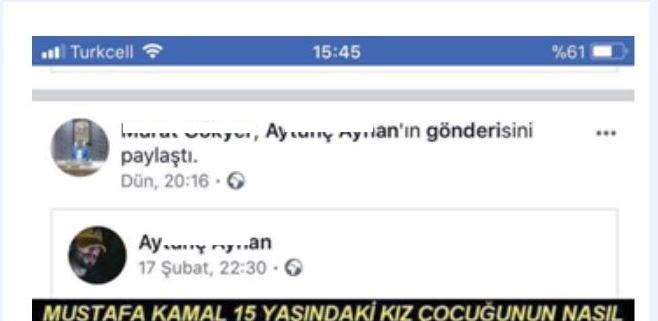 “15 yaşındaki kız çocuğunun …..” başlıklı iğrenç görseli utanmadan yayınlamış;