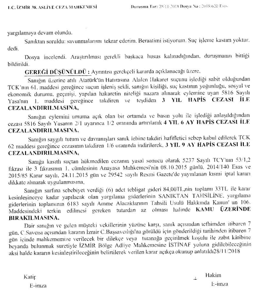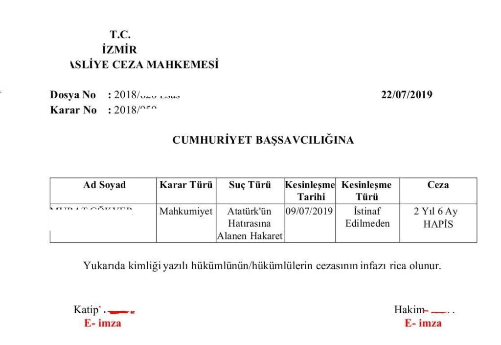2 yıl 6 aya inen hapis cezası kesinleşmiştir.